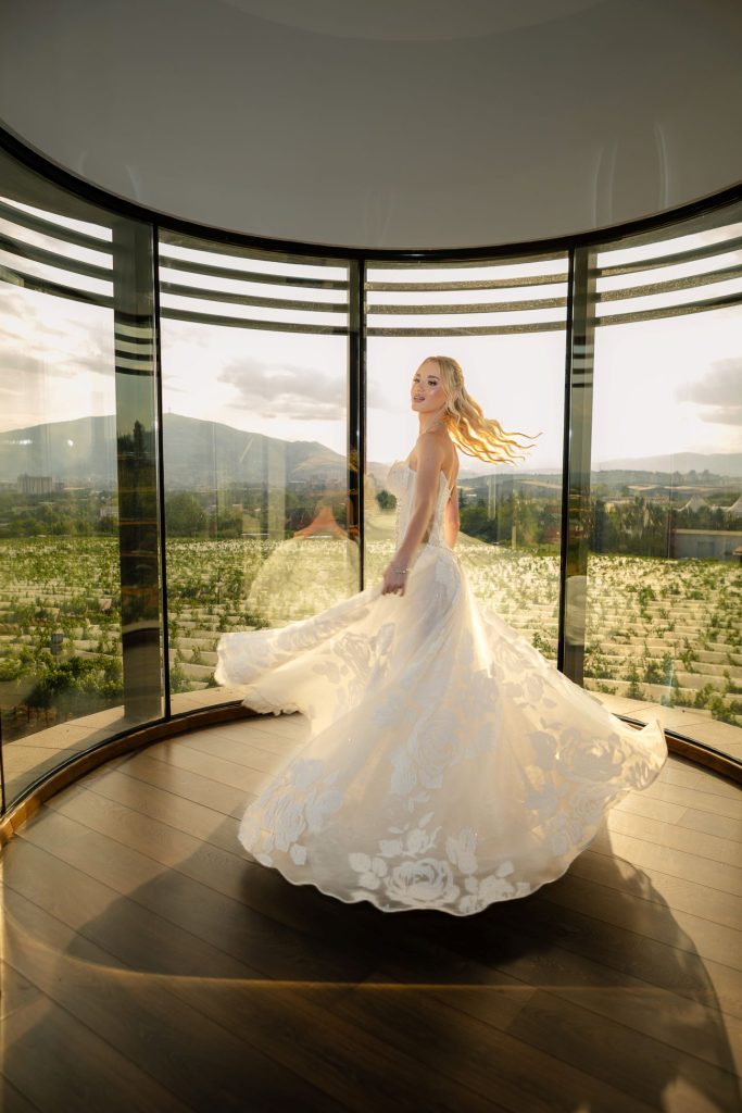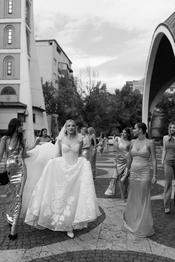 Дафина изгледаше неверојатно во три различни венчаници, секоја со свој стил – класична, модерна и вечерна. Сите три беа од „Кокев“, изработени беспрекорно и со препознатлив потпис на елеганција.