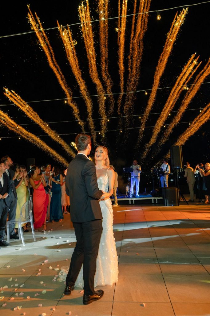 Вечерта продолжи со нивниот прв танц, емотивен и спокоен, а потоа следуваше танцот со таткото на Дафина – момент исполнет со љубов и гордост. Огнометот и сечењето на тортата беа прекрасен завршеток на еден вистински посебен ден.